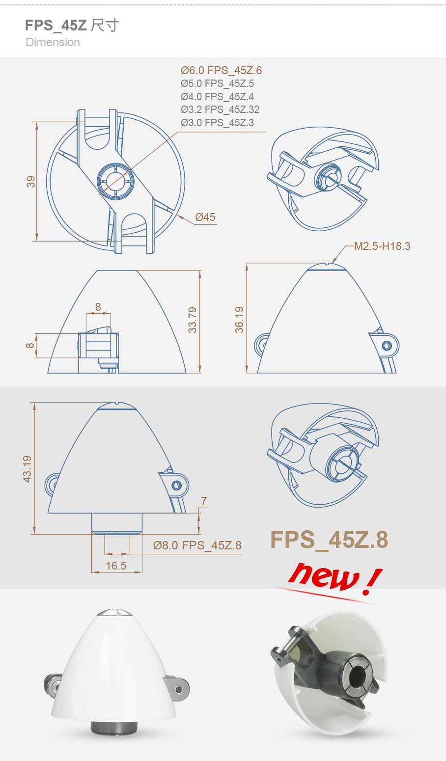 FPS_45Z.32 Type Z, cone dia.45mm, shaft hole 3.175mm