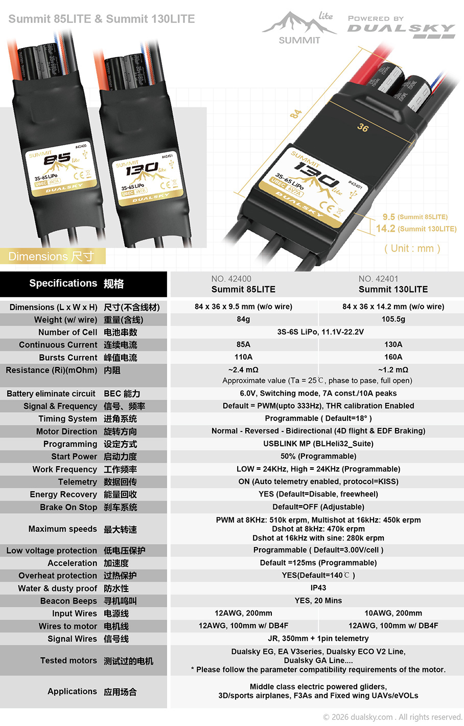 SUMMIT 130LITE, SUMMIT series brushless speed controller