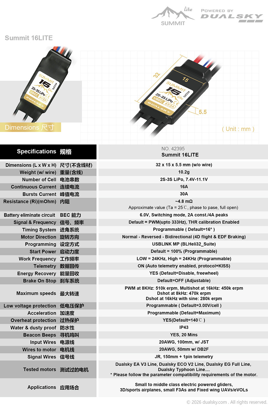 SUMMIT 16LITE, SUMMIT series brushless speed controller