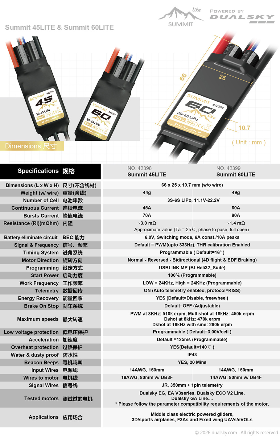 SUMMIT 60LITE, SUMMIT series brushless speed controller